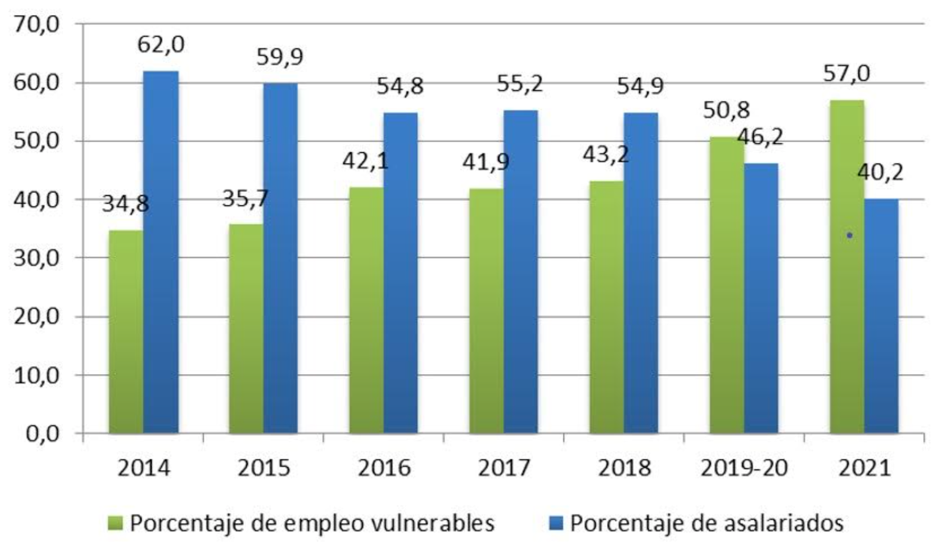 Esta tendencia se ve reforzada por el efecto de los elevados niveles de inflación de los últimos años sobre la capacidad de ahorro de las familias y sobre el propio sistema de prestaciones sociales. Así, los trabajadores han perdido interés en el trabajo formal y los beneficios establecidos en la normativa laboral, abandonando las conquistas alcanzadas en el campo de la seguridad social y el sistema de pensiones por considerarlas irrelevantes.